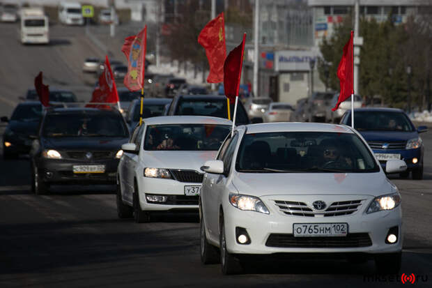 Автопробег стартовал около 10:30 часов утра с площади имени Салавата Юлаева. Колонна, состоящая из 10-15 автомобилей, проследовала до Парка Победы.